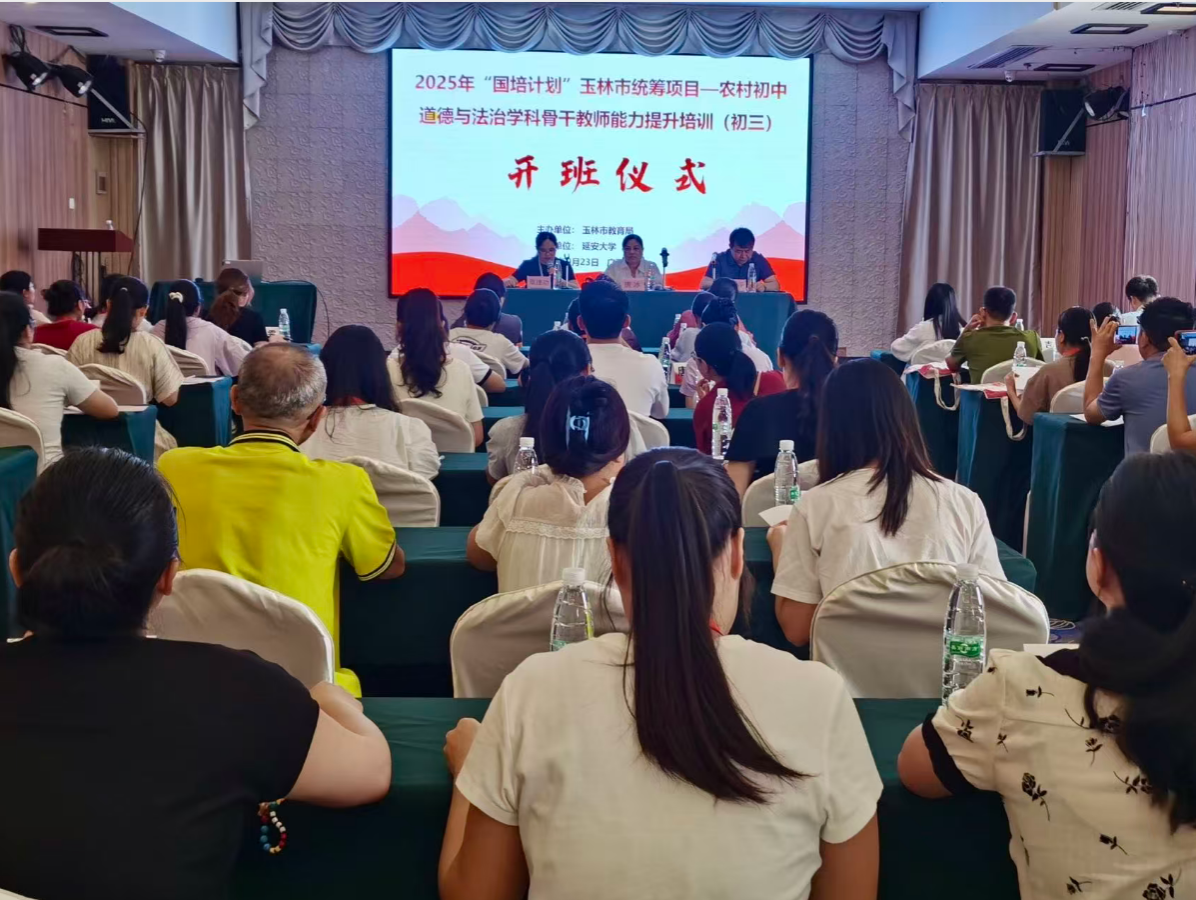 (本网讯)为深入贯彻落实立德树人根本任务,切实提升玉林市初三道德与法治学科骨干教师的专业素养和教学实践能力,2025年9月23日,由玉林市教育局统筹、延安大学承办的2025年“国培计划”玉林市统筹项目——农村初中道德与法治学科骨干教师能力提升培训(初三)班在南宁市状元坡大酒店顺利举行。玉林市教师培训中心副主任唐冰,延安大学文学院党委委员、思政专员任永平,以及来自玉林市各县市区的60名培训学员共同参加了开班典礼。